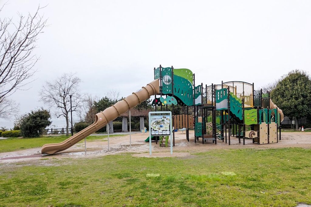 八木遺跡公園の大型複合遊具がリニューアル!アカシゾウをイメージしたすべり台や化石モチーフの遊具など