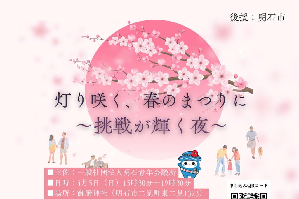 灯り咲く、春のまつりに ~挑戦が輝く夜~ 東二見にある「御厨神社」で、明石青年会議所4月例会イベント「灯り咲く、春のまつりに ~挑戦が輝く夜~」が2026年4月5日(... -