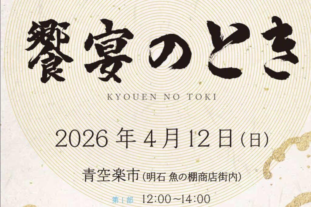 饗宴のとき2026 魚の棚商店街の「青空楽市」で日本酒を楽しむイベント「饗宴のとき2026」が2026年4月12日(日)に開催されます! 明石のこだわり飲食店5店舗と、日本酒... -