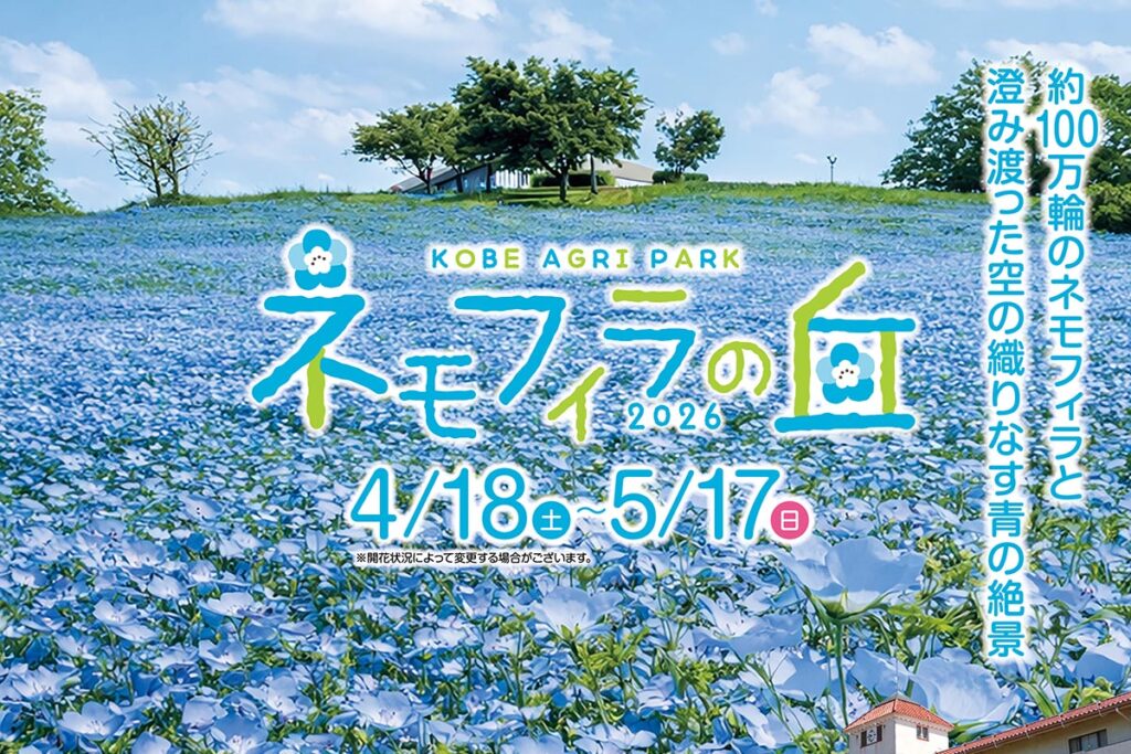 ネモフィラの丘2026 神戸市西区押部谷町の旧農業公園・神戸ワイナリーが再整備されてオープンした「こうべアグリパーク」の「ネモフィラの丘2026」が2026年4月18日(土... -
