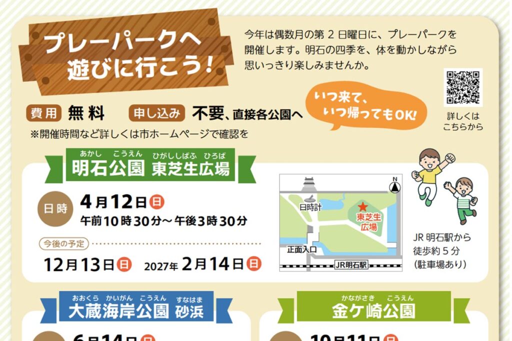 あかしプレーパーク 明石市内にある明石公園・大蔵海岸公園・金ケ崎公園で「あかしプレーパーク」が偶数月の第2日曜日に合計6回開催されます! 広報あかし 2026年(令和... -