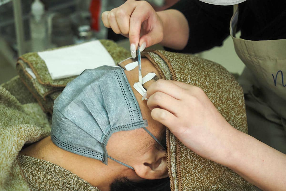 初回来店時はカウンセリングをしてから施術スタート!今回はフットネイルとまつ毛エクステを体験させていただくことに!
