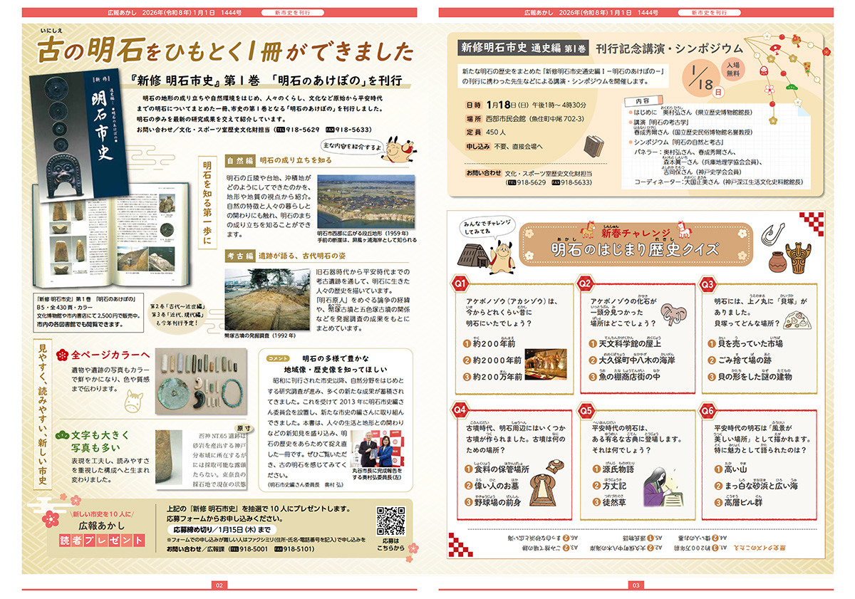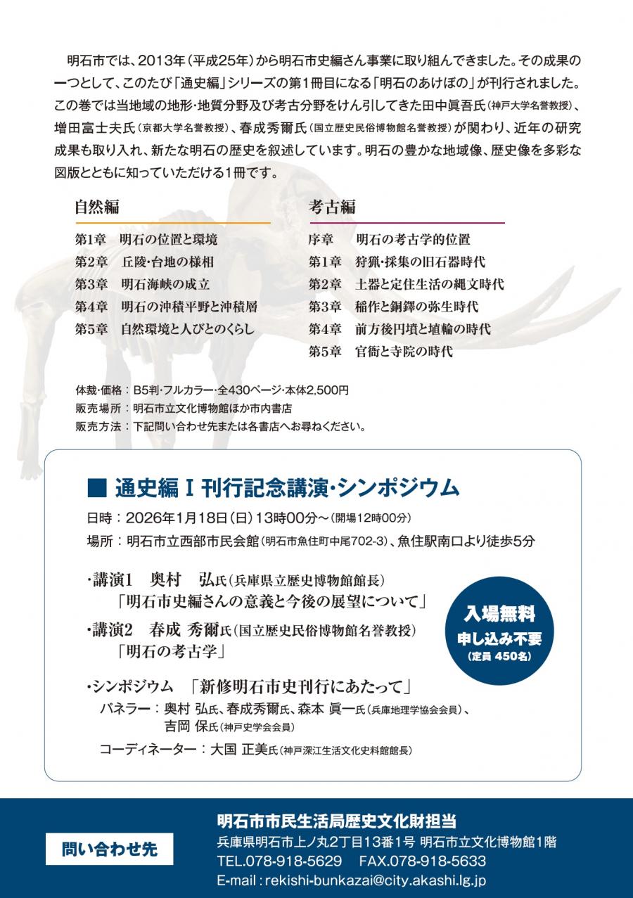 明石の歴史をまとめた新修 明石市史 第1巻 -明石のあけぼの-が刊行され、入場無料の刊行記念講演・シンポジウムが2026年1月18日(日)に開催されます!