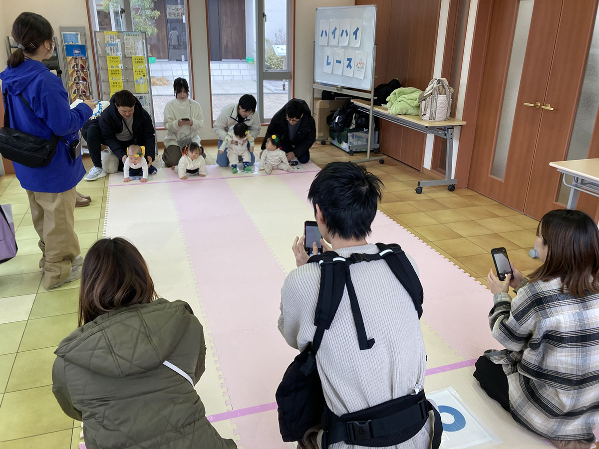 赤ちゃんたちがサンタに変身!ハイハイで元気いっぱいにゴールを目指そう!