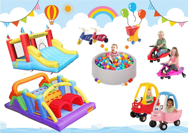 跳んだり、転がったり、滑ったり、全身を使ってふわふわ遊具を満喫しよう!