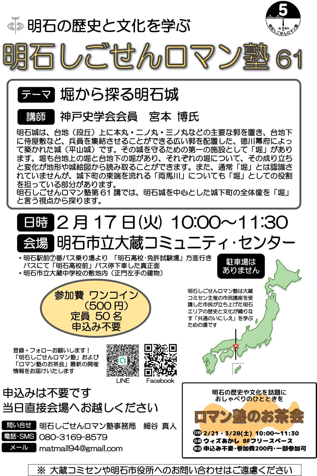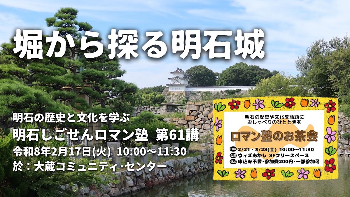 明石市立大蔵中学校内にある「大蔵コミュニティ・センター」で、明石の歴史と文化を学ぶ「明石しごせんロマン塾 第61講」が2026年2月17日(火)に開催されます!