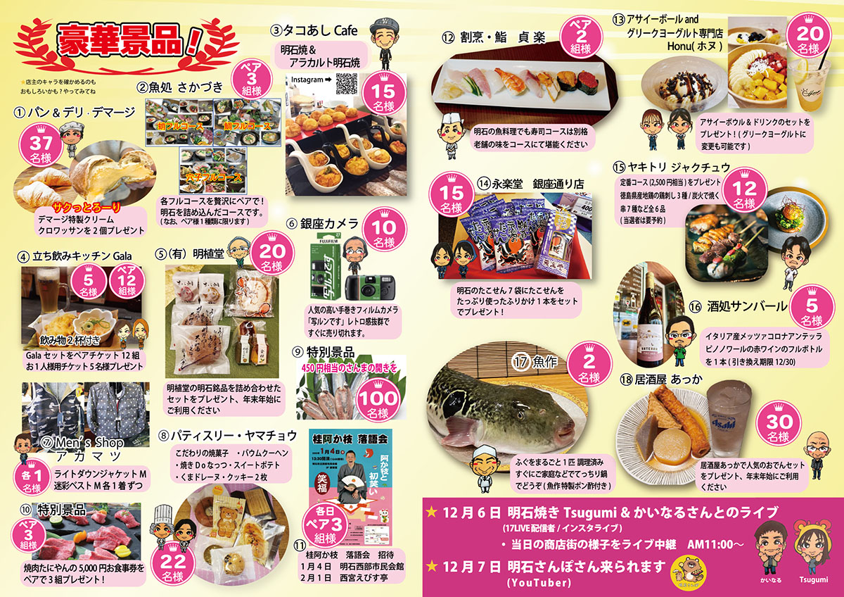 イベントの詳細や参加方法などについては明石銀座商店街の公式HPもご確認下さい!