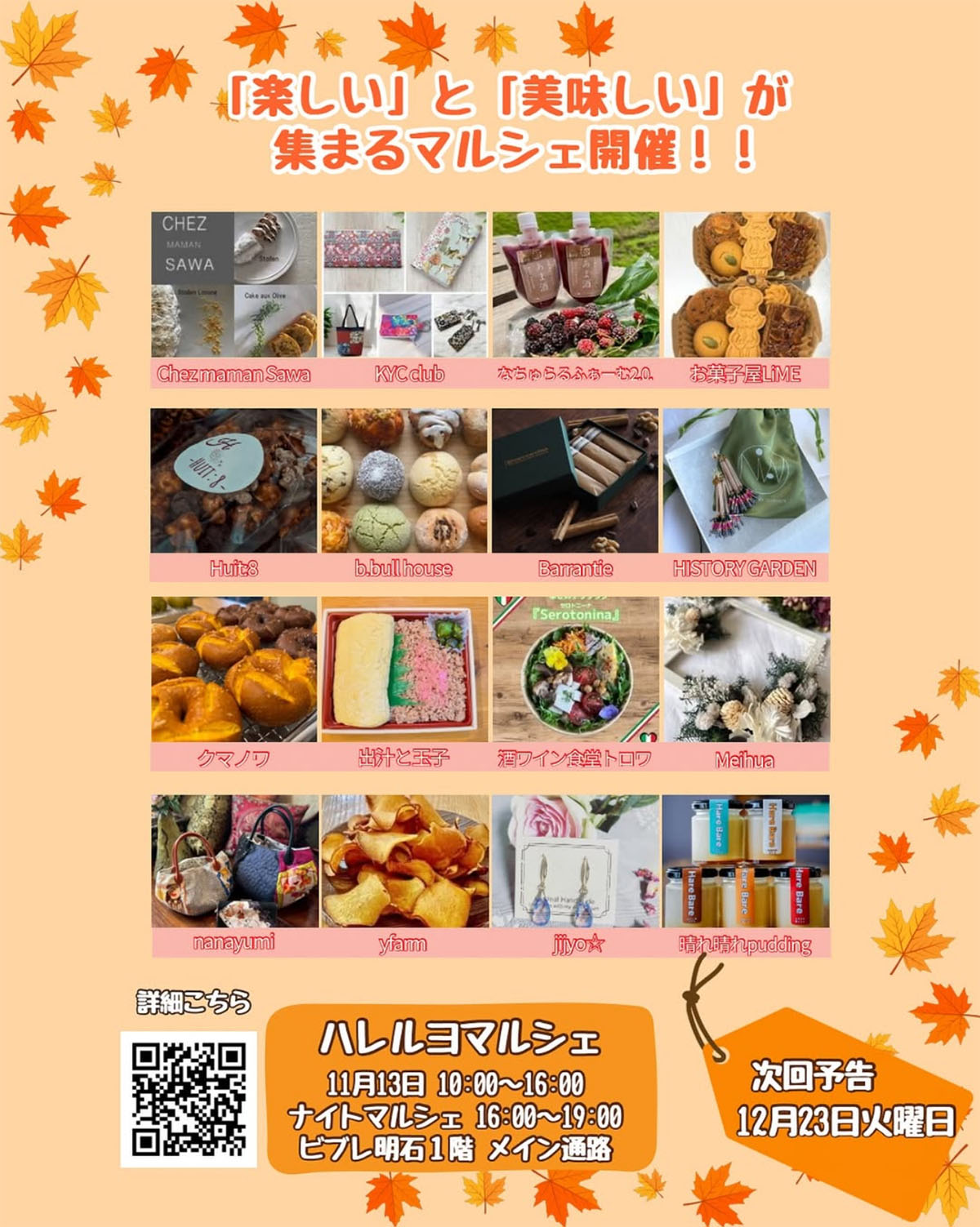 明石ビブレ1階で「ハレルヨマルシェ」が11月13日開催!楽しいと美味しいが集合!