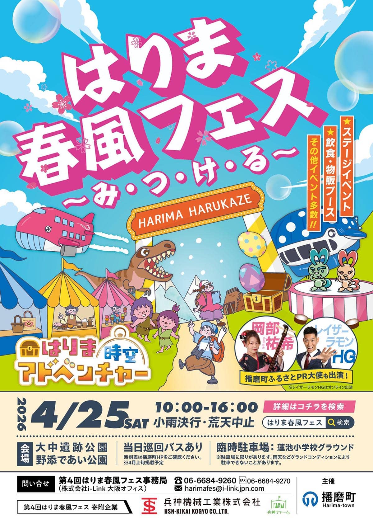 加古郡播磨町の「大中遺跡公園」と「野添であい公園」で第4回 はりま春風フェスが2026年4月25日(土)に開催されます!