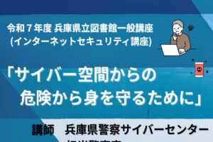 明石公園内にある「兵庫県立図書館」で一般講座(インターネットセキュリティ講座)「サイバー空間からの危険から身を守るために」が2026年2月28日(土)に開催されます!
