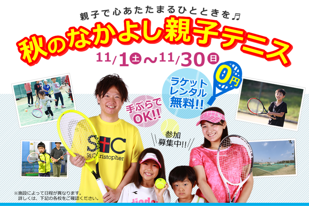関西を中心に18のスクールがあるITCテニススクールで参加無料の秋のなかよし親子テニスが開催されます!