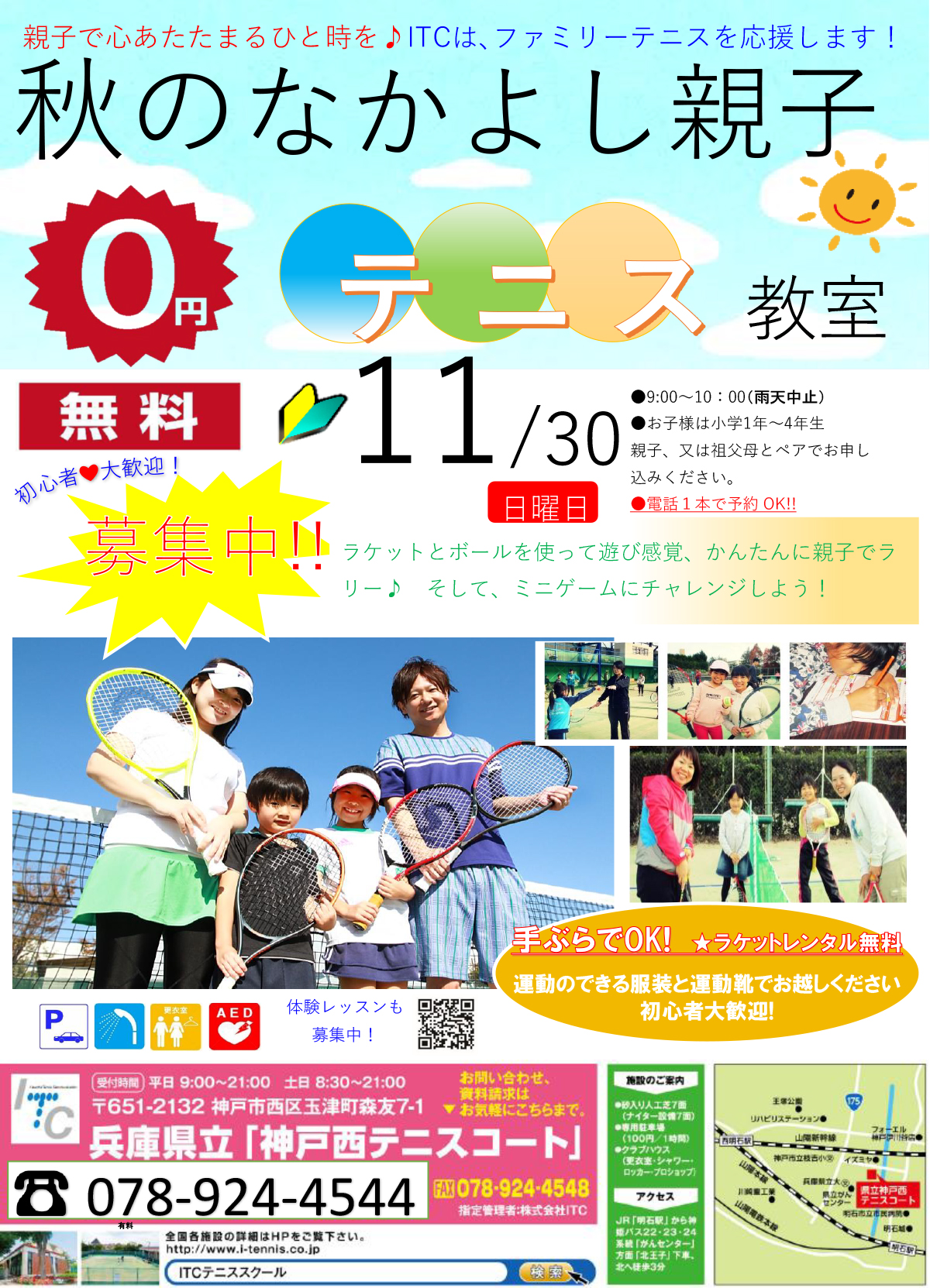 ITCテニススクールで「秋のなかよし親子テニス」が開催!【神戸西・明石海浜公園】