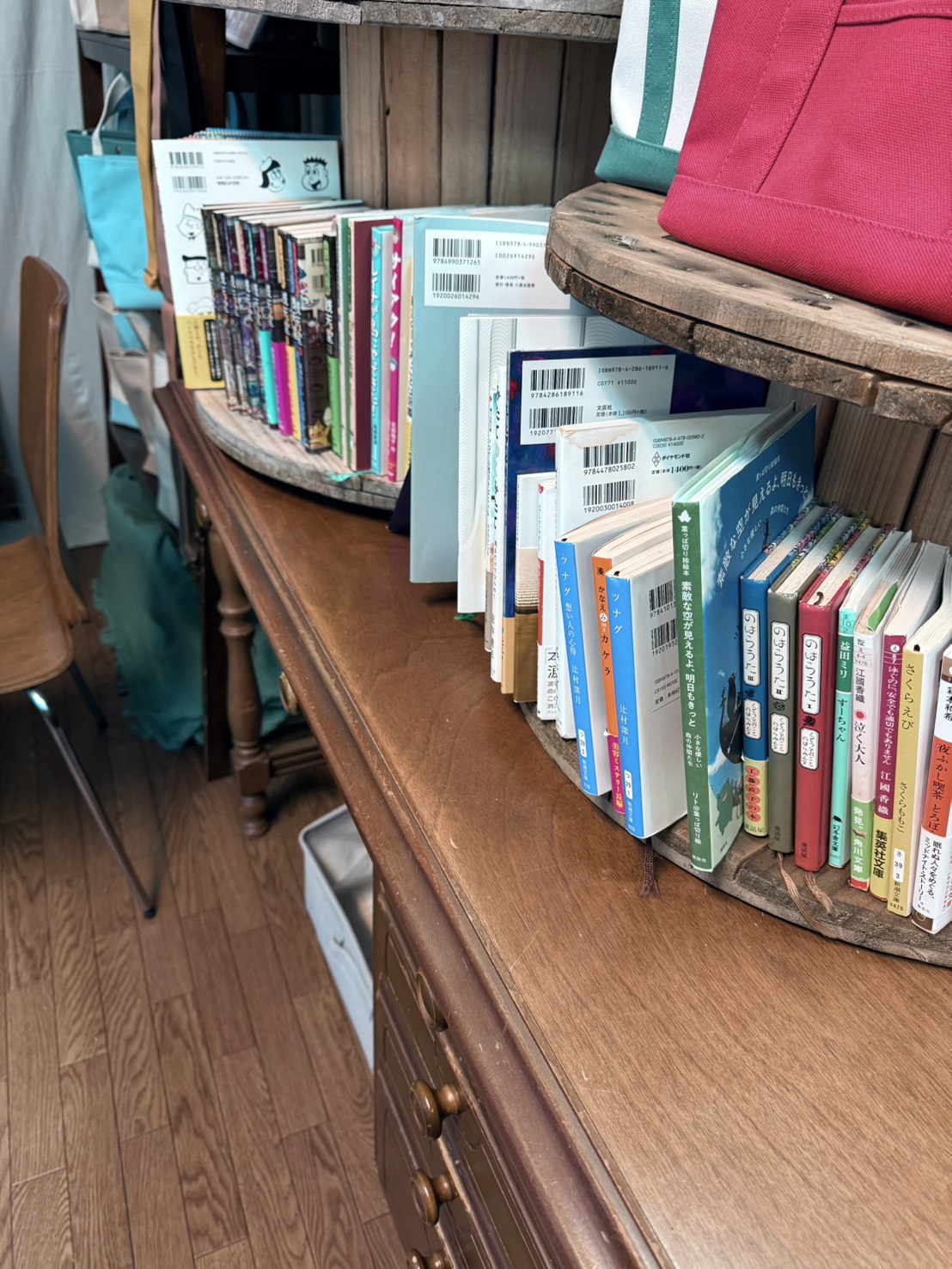 Kaenは手作り雑貨のセレクトショップですが、明石の取り組み「明石まちなかブックスポット」に登録されて、ほっとひと息つける本のコーナーができています!