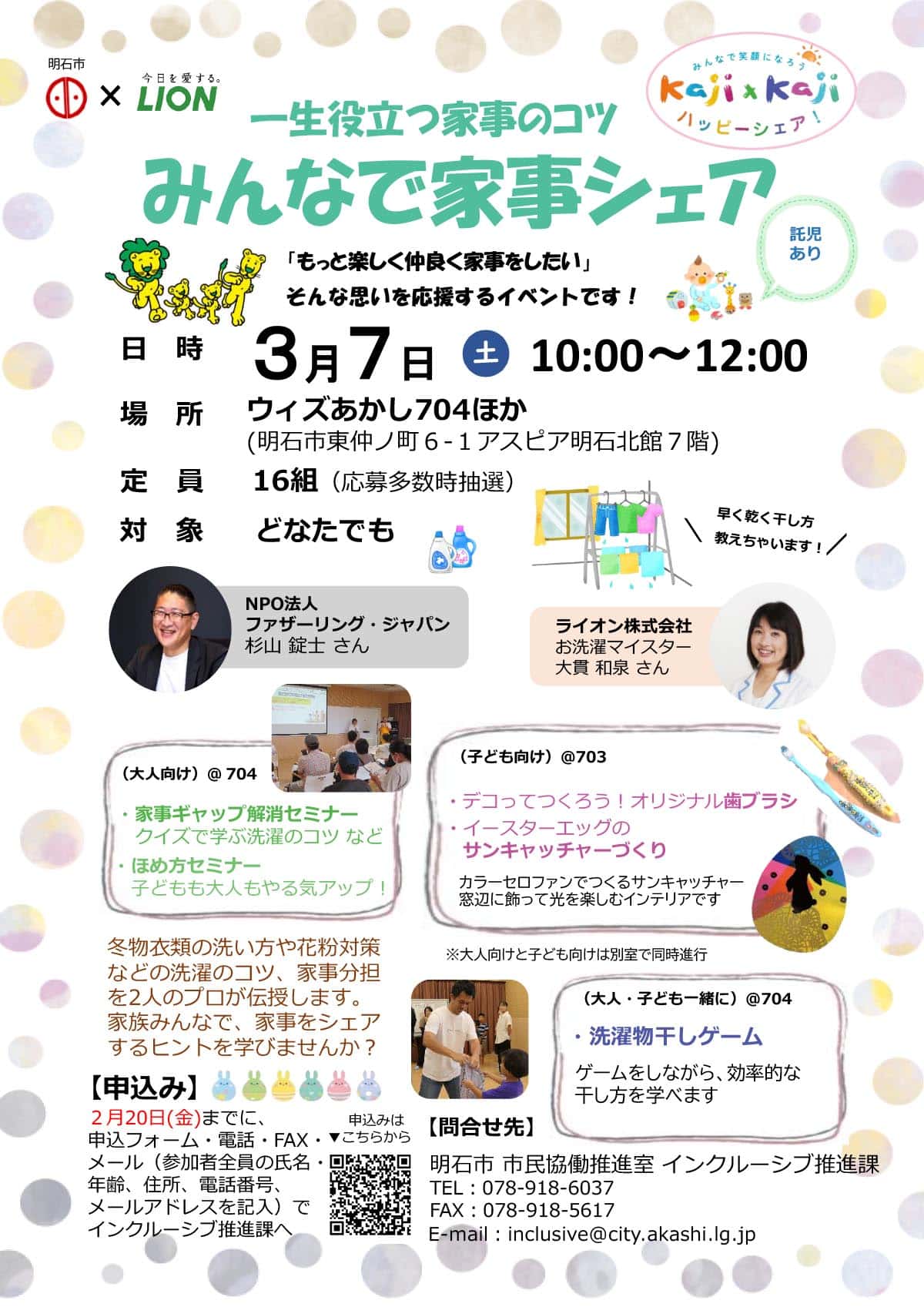 明石市×ライオン株式会社「一生役立つ家事のコツ!みんなで家事シェア」が3月7日開催!2月20日〆切