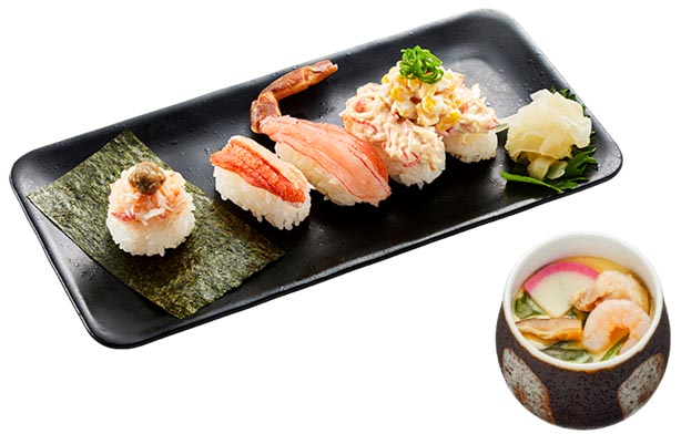 5貫セットと茶碗蒸しの詳細は以下のとおりです。期間限定の商品も食べ放題に含まれるのが嬉しいですね!