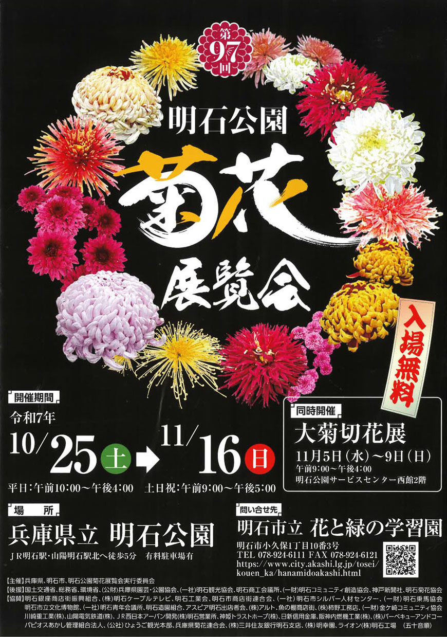 明石の秋の大定番【第96回明石公園菊花展覧会】が始まります。
