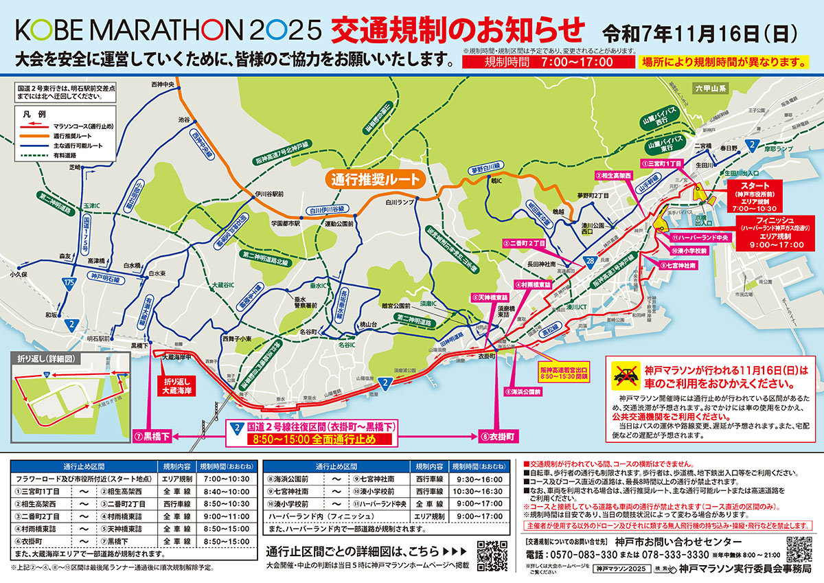 神戸マラソン2025の交通規制に注意