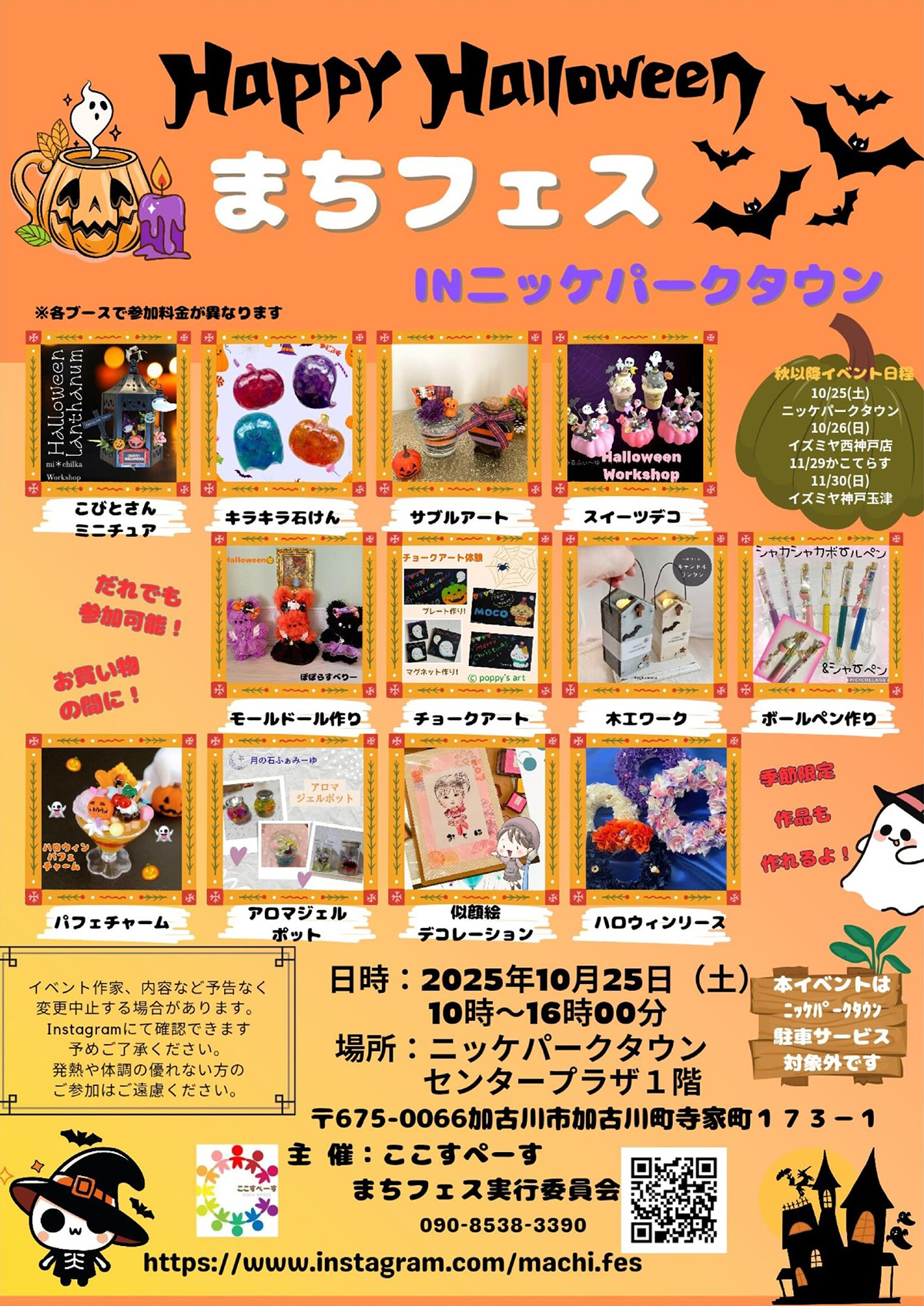 JR加古川駅前の商業施設「ニッケパークタウン」1階のセンタープラザで「HAPPY HALLOWEEN まちフェス IN ニッケパークタウン」が2025年10月25日(土)に開催されます!