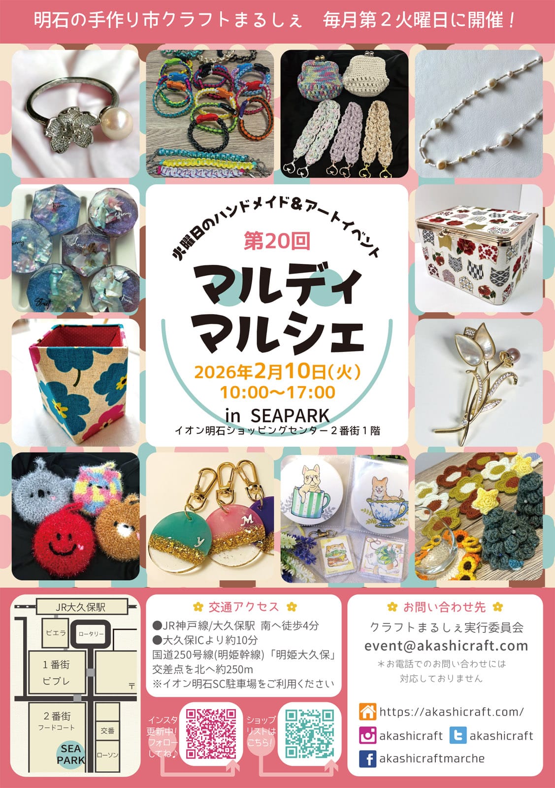 JR大久保駅前の商業施設「イオン明石ショッピングセンター」2番街1階のシーパークで第20回 マルディマルシェが2026年2月10日(火)に開催されます!