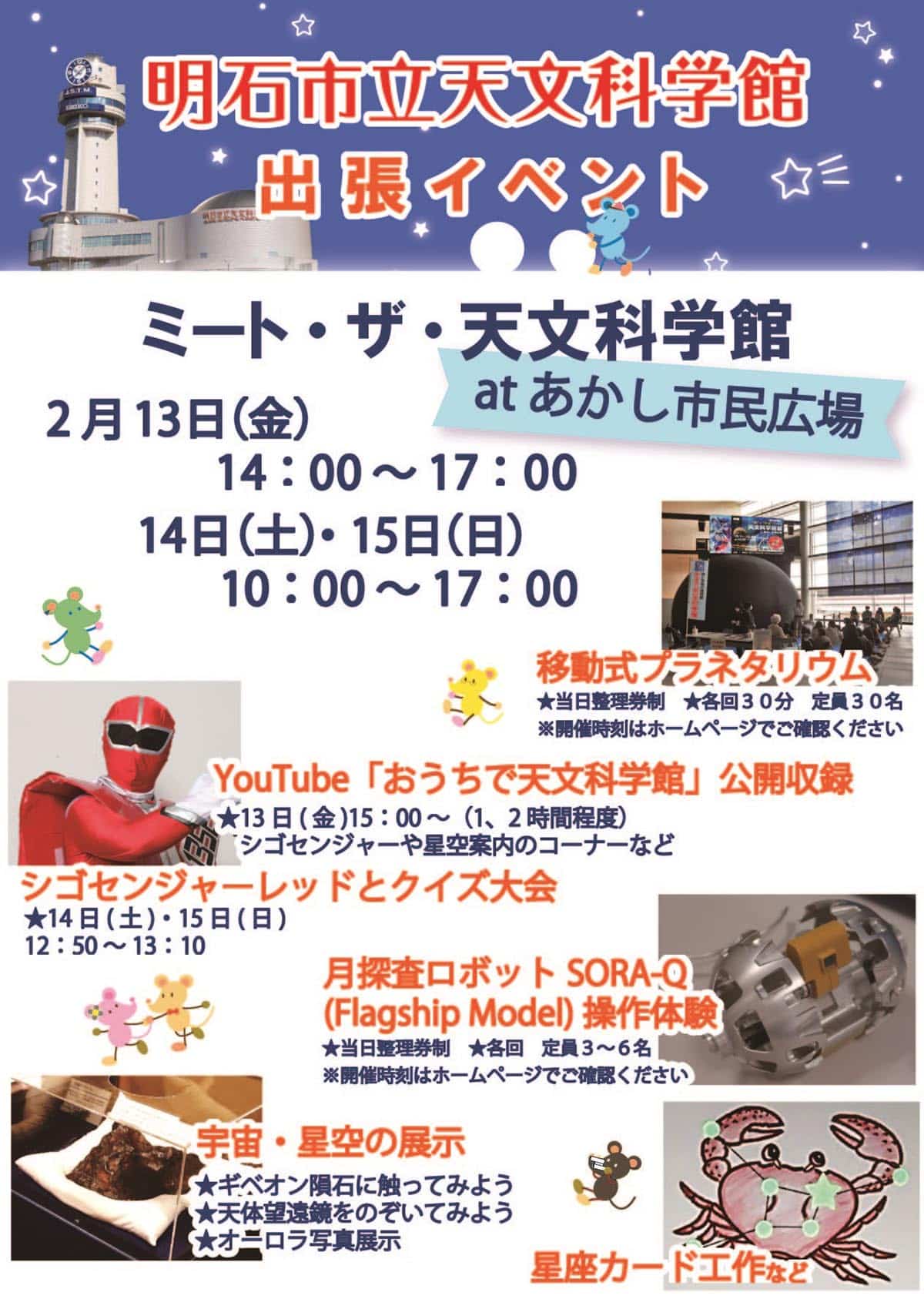 あかし市民広場で「ミート・ザ・天文科学館 at あかし市民広場」が2月13日~15日開催!移動プラネタリウムや公開収録も!