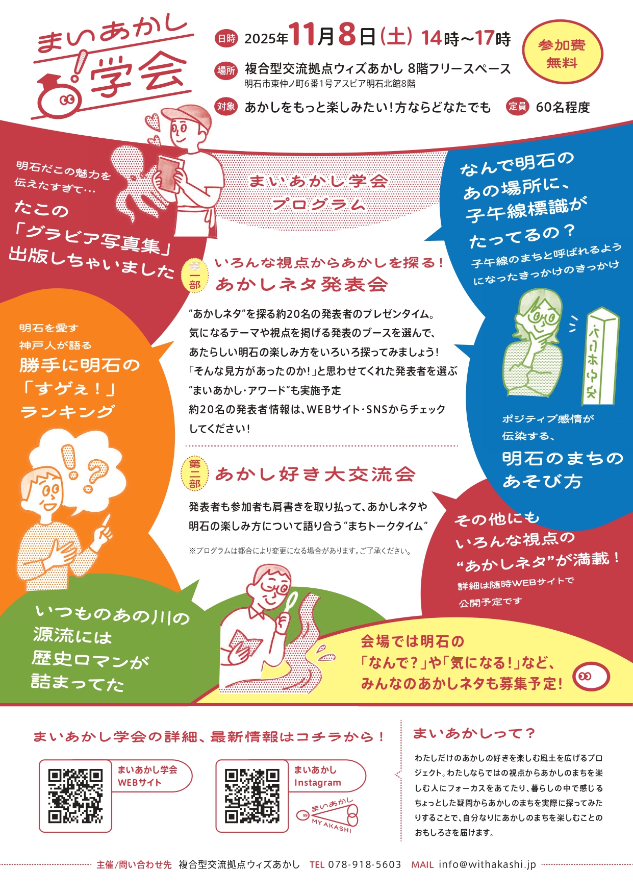 明石駅前の商業施設「アスピア明石」8階の「複合型交流拠点ウィズあかし」フリースペースで「第1回まいあかし学会」が2025年11月8日(土)に開催されます!