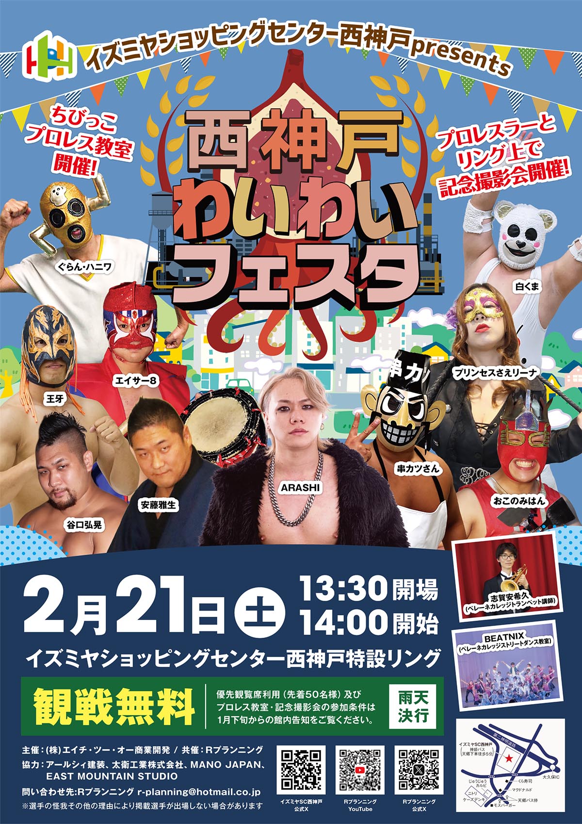 イズミヤSC西神戸で観覧無料のプロレスイベント「西神戸わいわいフェスタ」が2月21日開催!ちびっこプロレス教室や記念撮影会も