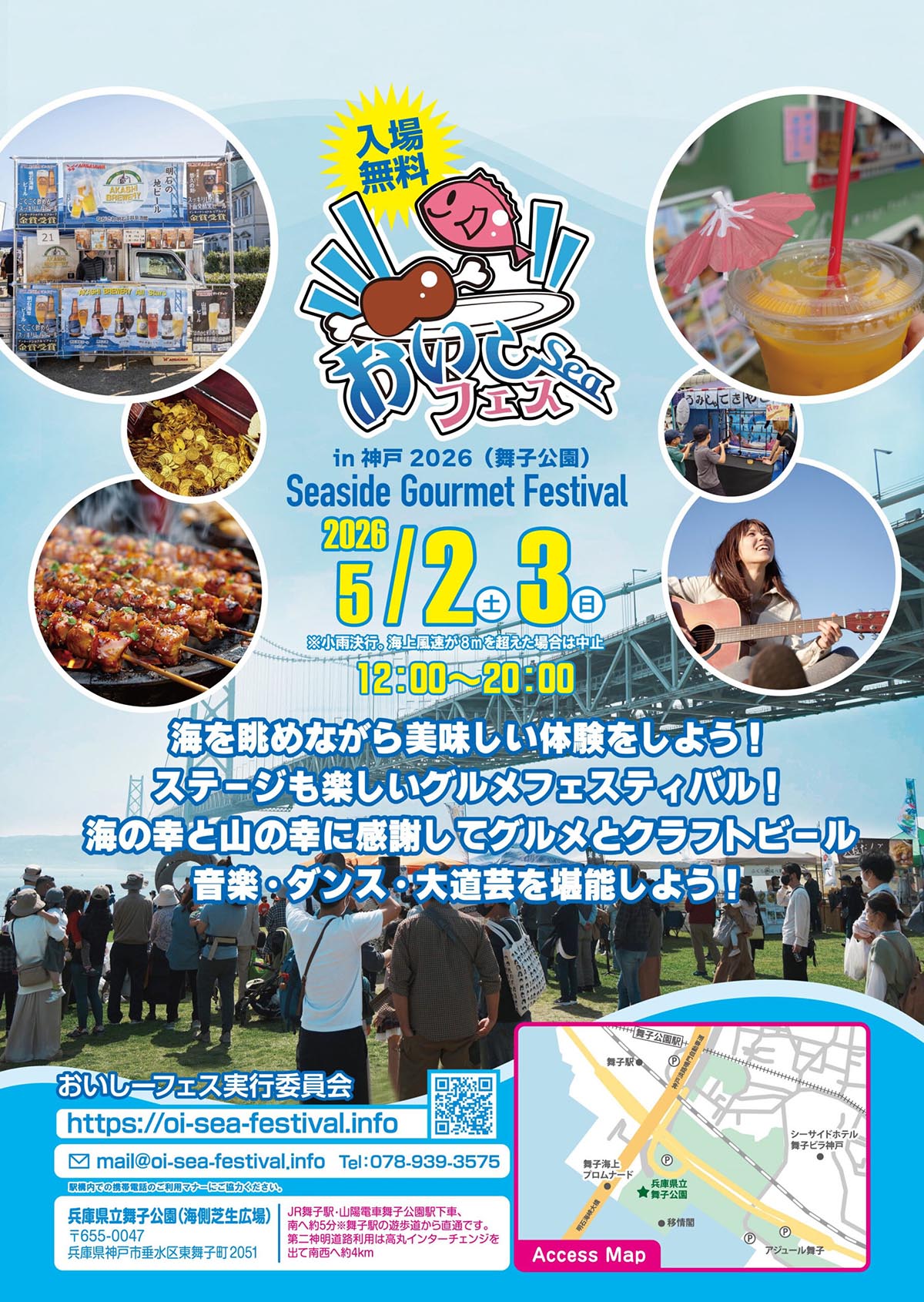 舞子公園でステージも楽しいグルメフェスティバル「おいしーフェス2026in神戸」が2026年5月2日(土)・3日(日・祝)に開催されます!