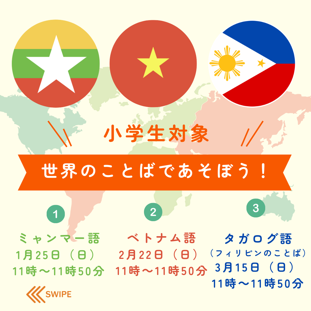 2026年1月25日(日)はミャンマー、2月22日(日)はベトナム、3月15日(日)はフィリピンとなっており、それぞれの国出身の講師の方が言葉や文化を紹介するのだそう。詳細は公式HPや公式Instagramでご確認ください!