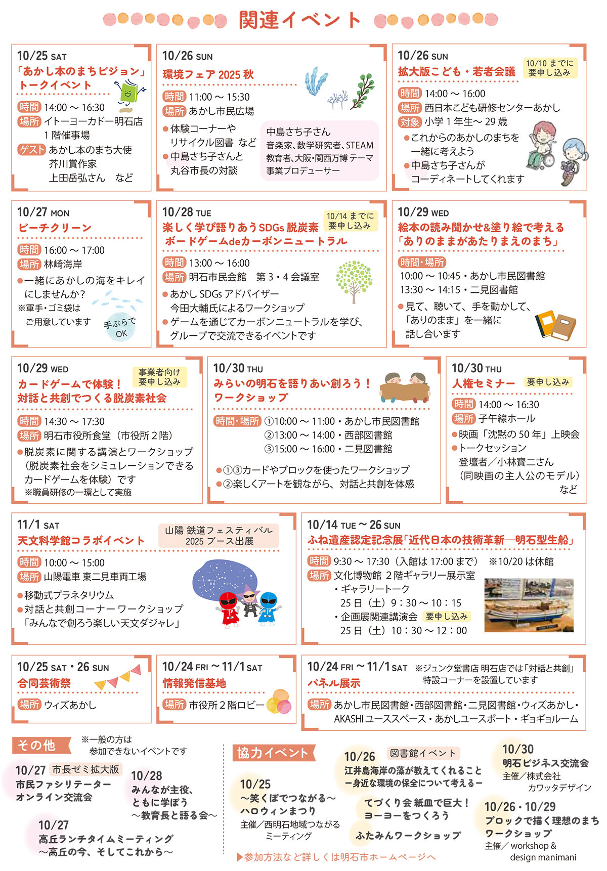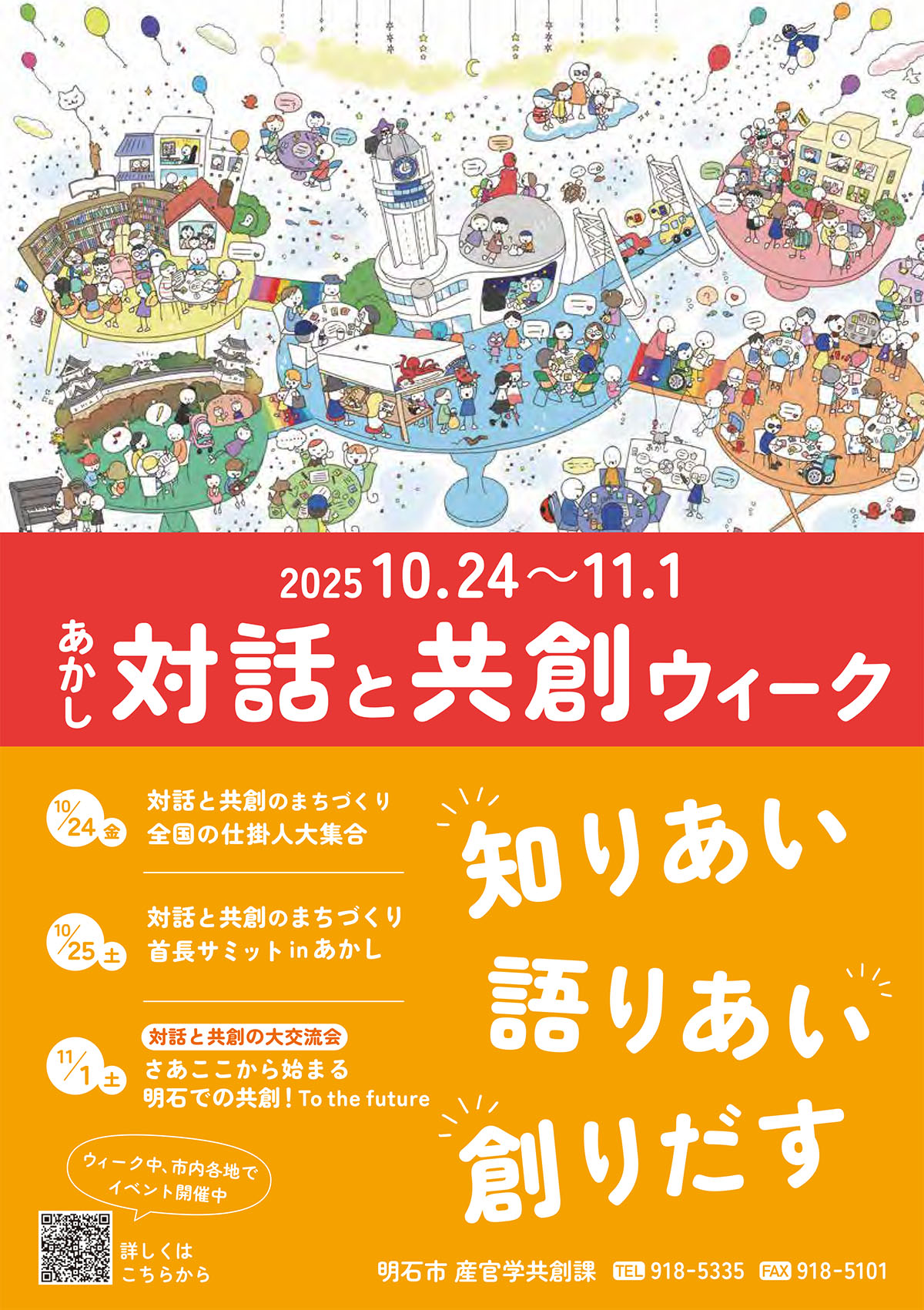 明石市では2025年10月24日(金)~11月1日(土)の9日間を「あかし対話と共創ウィーク」と位置付け、明石市内の各所で対話と共創に関する様々な催しが集中的に開催されます!