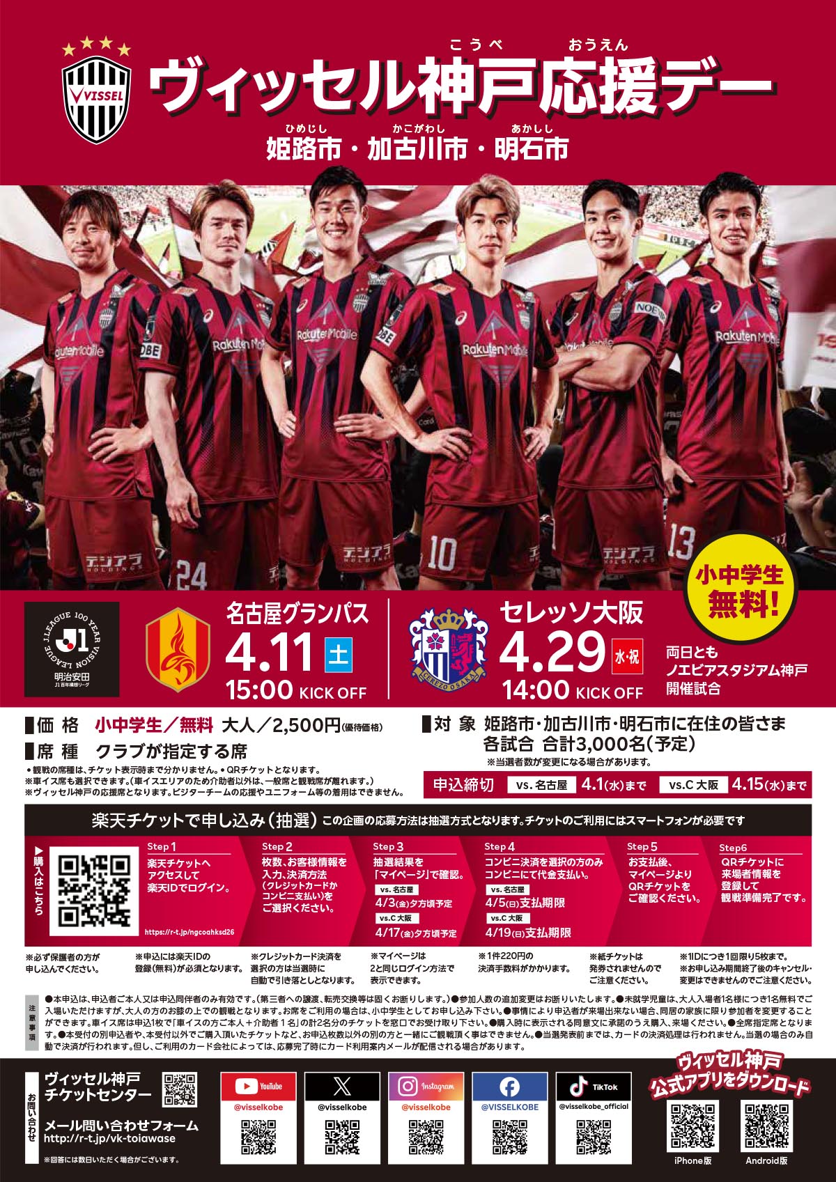 ヴィッセル神戸「明石市民応援デー」(抽選)のご案内/明石市