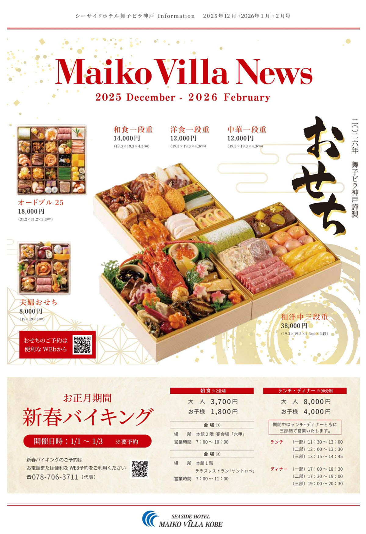 舞子ビラでは館内のレストラン「日本料理 有栖川」・「テラスレストラン サントロペ」・「ダイニング&バー KEY WEST(キーウエスト)」での12月~2月頃の様々なメニューが発表されているので、そちらも是非ご確認ください!