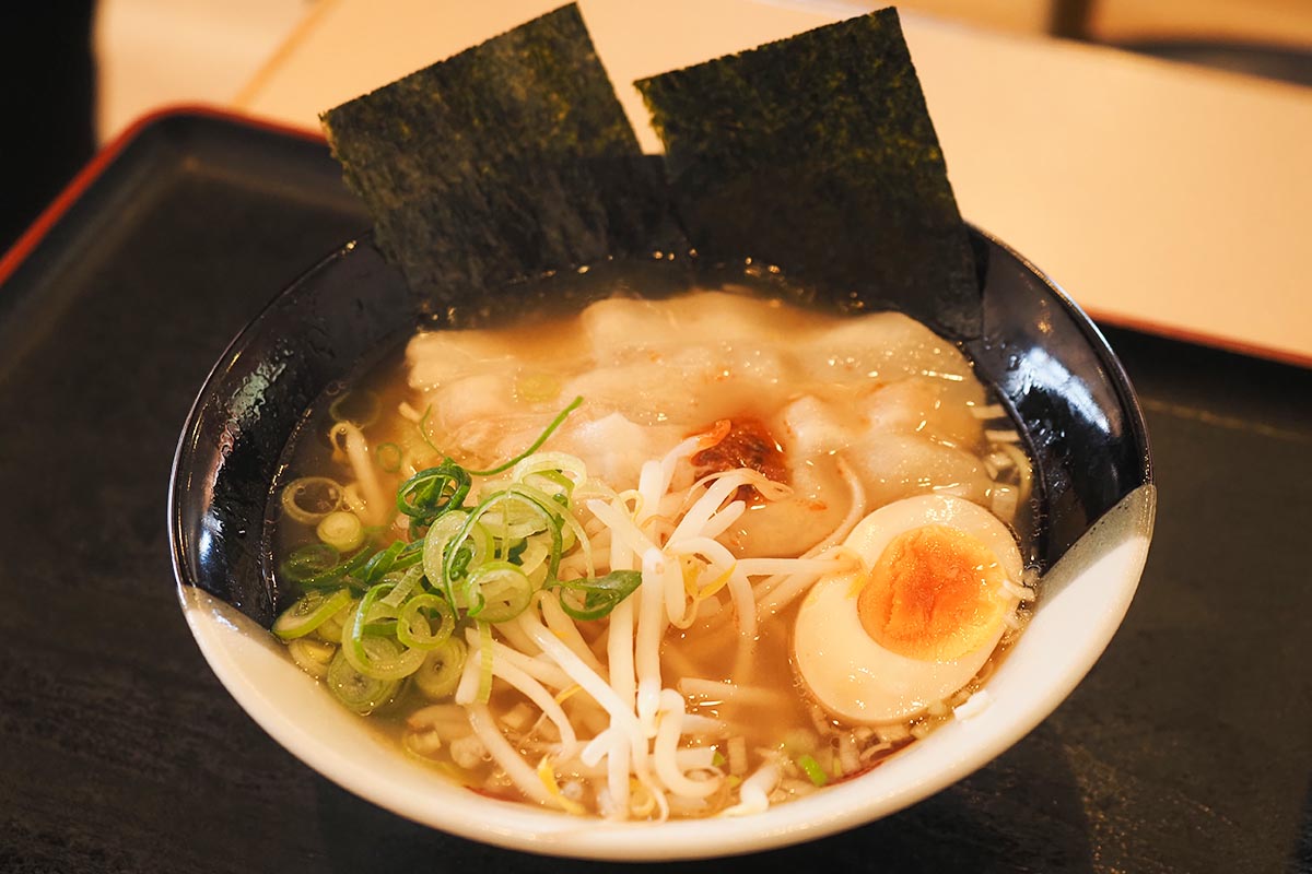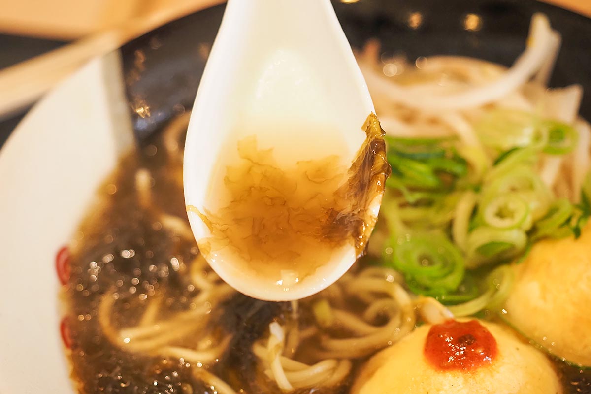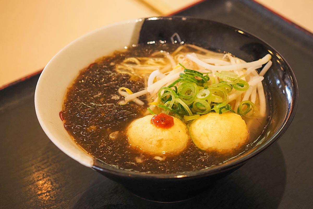 明石の生海苔をふんだんに使用されており、生のりに合うようにスープも専用のブレンドになっているんだそう。明石焼きがトッピングされているのも明石感が増して良いですね!