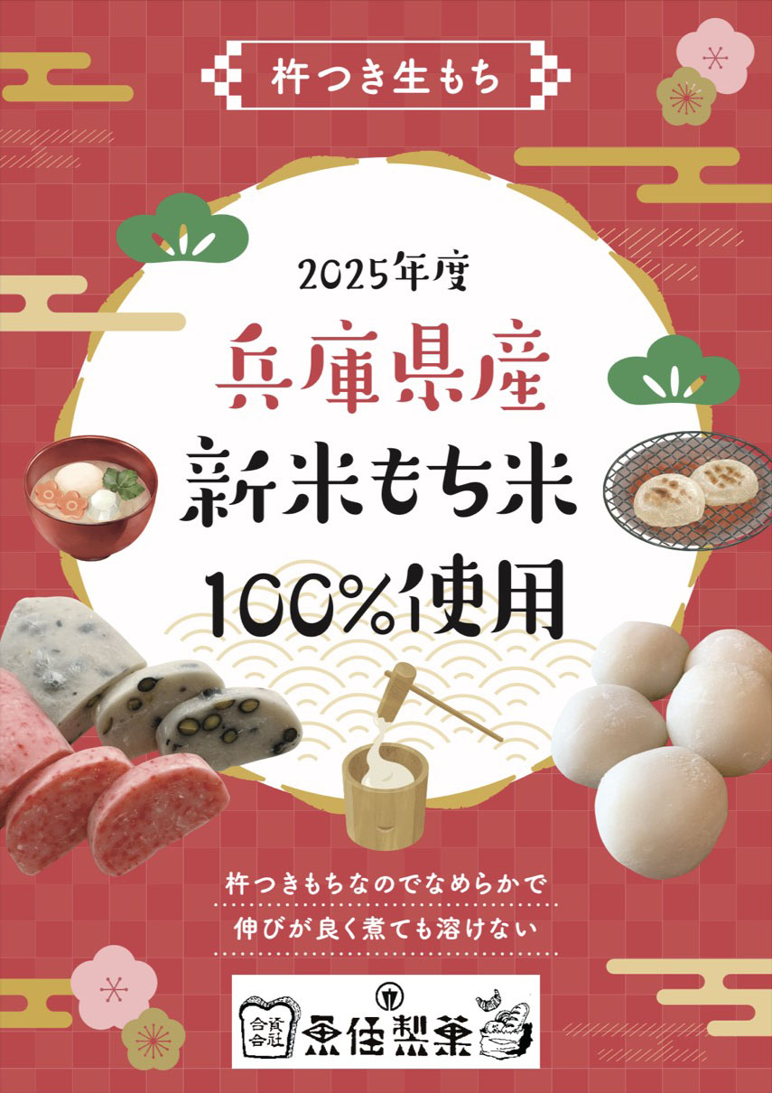 創業60年以上、和菓子屋から始まった魚住製菓の原点とも言うべき、杵つき生もち(2025年度 兵庫県産新米もち米100%使用)年末販売の予約がスタートしています!