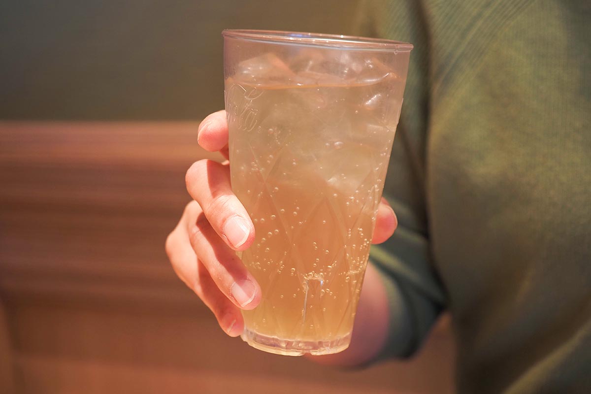 料理の合間に楽しむ飲み物・・・今回ドリンクは飲み放題で「アルコール+ソフトドリンク飲み放題」の中から「国産果実ソーダ 白桃」をチョイス!