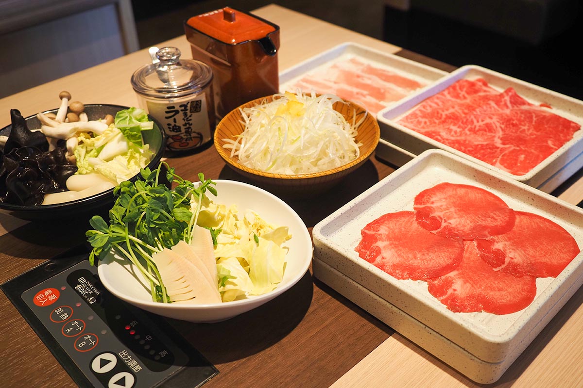 豆乳鍋だしは厳選豚バラや筍と野菜の盛り合わせ、黒きくらげなどの具材がオススメです