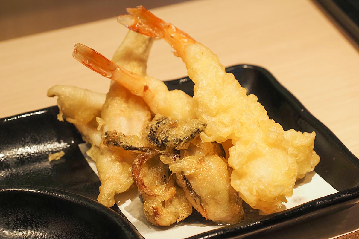 季節のゆず庵コースでも海老天・ちくわ磯辺天・さつまいも天がありますが、贅沢コースなら季節限定の大海老天や瀬戸内海産 牡蠣天などもチョイスできるまさに贅沢の極み・・・!