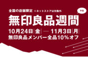 全品10%OFFの「無印良品週間」が10月24日〜11月3日の期間開催!委託会社の物流障害の影響により実店舗のみでの開催に
