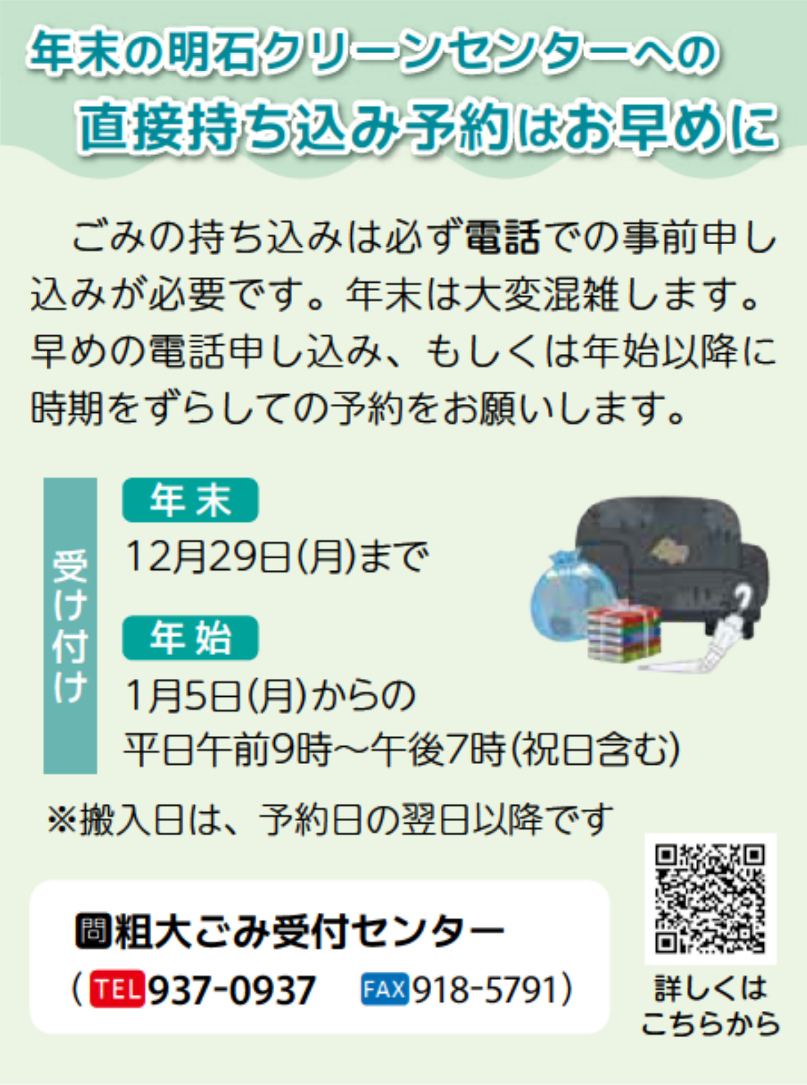 年末は「明石クリーンセンター」へごみを持ち込む人が多くなるようですのでこちらも注意!