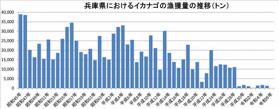 兵庫県での イカナゴ漁解禁日 の取組みは平成5年頃から始まっており、例年2月中旬頃に漁業者が試験操業を行い、採集されたサンプルの全長等を県立技術センターが解析して、その情報を基に関係漁業者が解禁日を決定しています。また、兵庫県におけるイカナゴの資源量は近年減少傾向にあり、翌年に向けて少しでも多くのイカナゴ資源を残すため平成29年(2017年)から早めの終漁日を設定し、翌年の親魚資源の確保に取組んでいます