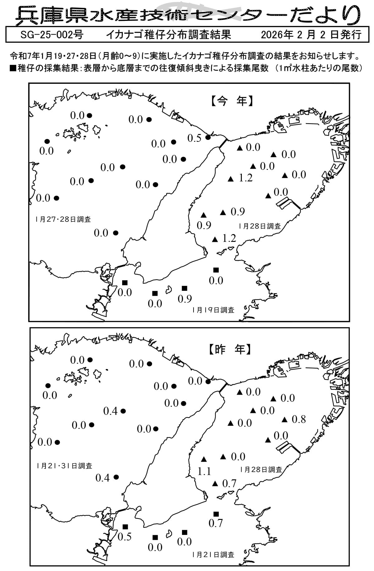 兵庫県立水産技術センターが今春、瀬戸内海で行われるイカナゴのシンコ(稚魚)漁に向けた「イカナゴ稚仔分布調査結果」を公表しています!