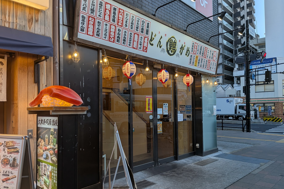国道2号線「明石駅前」交差点近くにあるテネシービル1階・地下1階に「大衆酒場どんがめ 明石店」がオープンしていました!