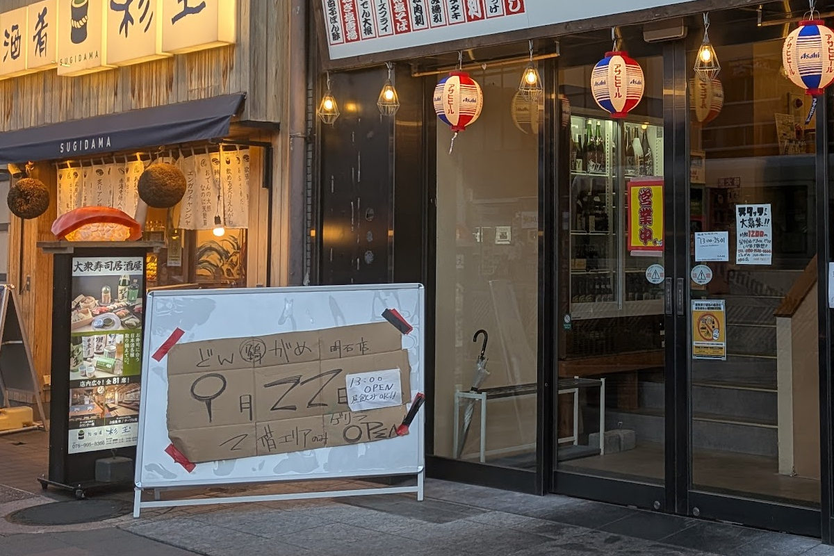 元々、この場所にあった居酒屋「肉餃子と手羽トロ唐揚げ はち 明石店」が閉店した際に、跡地には同じコズミックホールディングスの「大衆酒場どんがめ 明石店」がオープン予定であることが告知されていました