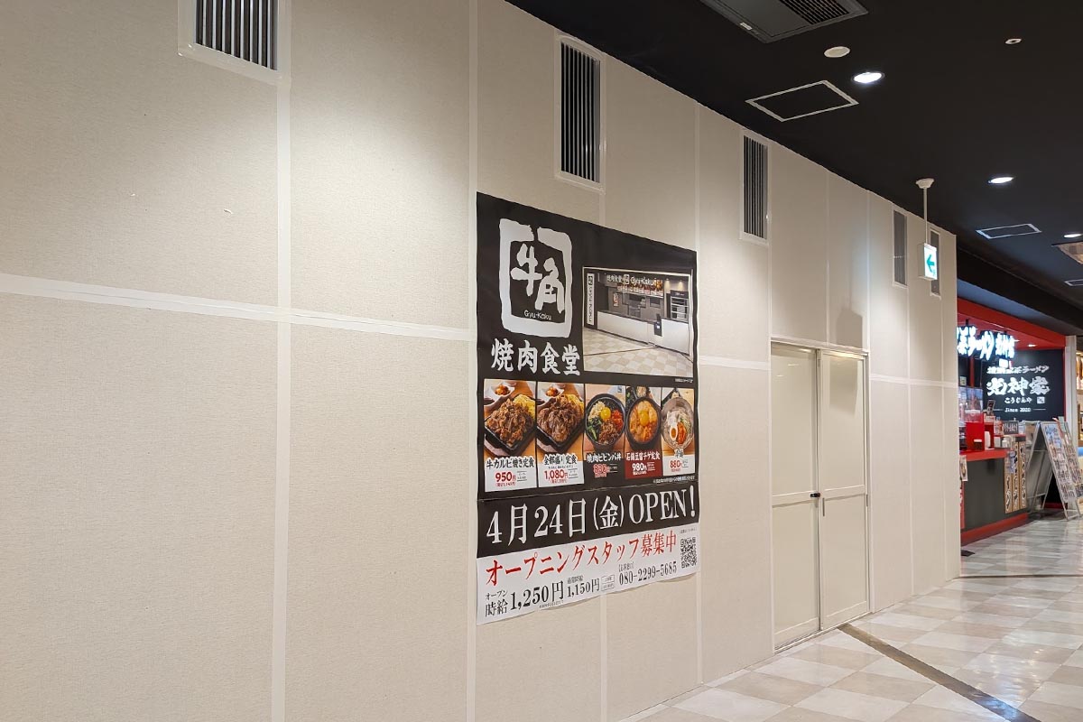 イオン明石ショッピングセンター2番街フードコートに「牛角焼肉食堂」が4月24日オープン予定!牛角がプロデュースするフードコート専門店