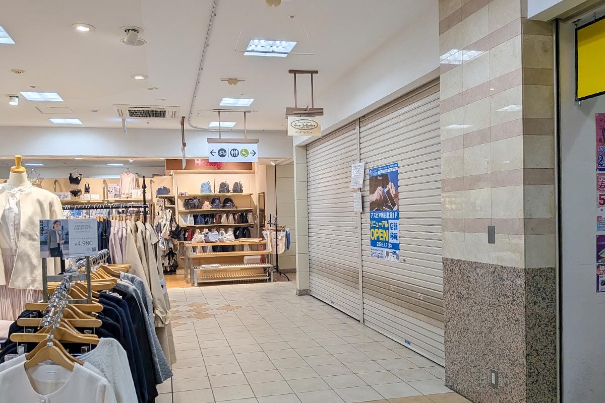 現在は3階の南館と北館をつなぐ通路部分にカウンターが設置されていますが、北館1階で2026年1月25日(火)に閉店された婦人服店「アーサコレクション アスピア明石店」跡に告知が掲示されていました