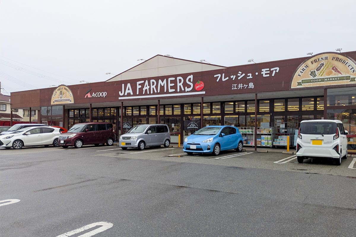 この店舗は元々「エーコープ江井ヶ島店」でしたが、2019年6月にリニューアルオープンされていました。エーコープ(Aコープ、A-COOP)は農業協同組合(農協)の購買部門の一つですが、農産物直売所の「ファーマーズマーケット」が組み込まれた店舗の名称が近年「JAファーマーズ○○」のような店名になっているのだそう