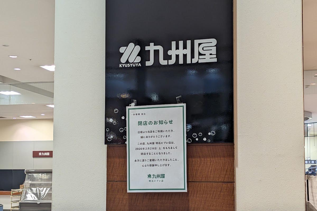九州屋 明石ビブレ店が閉店 JR大久保駅前の商業施設「イオン明石ショッピングセンター」1番街の「明石ビブレ」1階にある青果専門店「九州屋 明石ビブレ店」が2026年2月2...