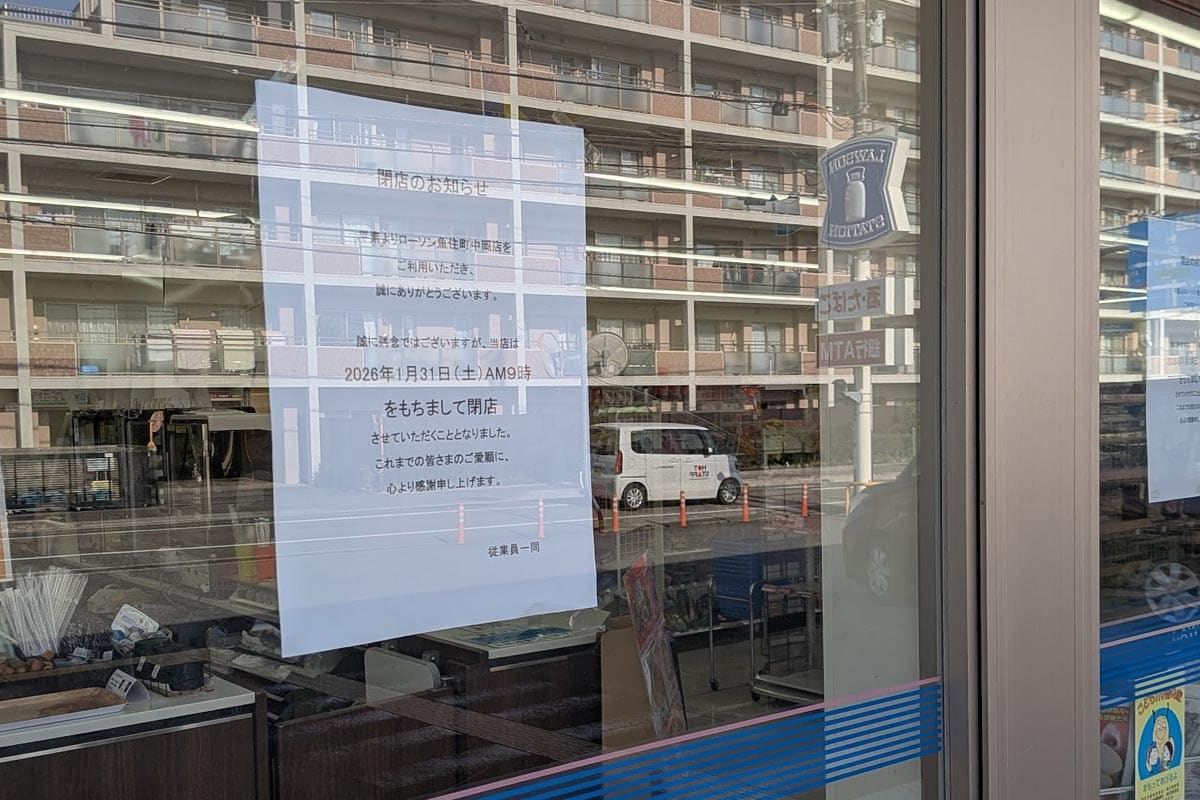 JR土山駅から北へ進んだ場所にあるコンビニエンスストア「ローソン 魚住町中岡店」が2026年1月31日(土)9:00をもって閉店されるそうです!