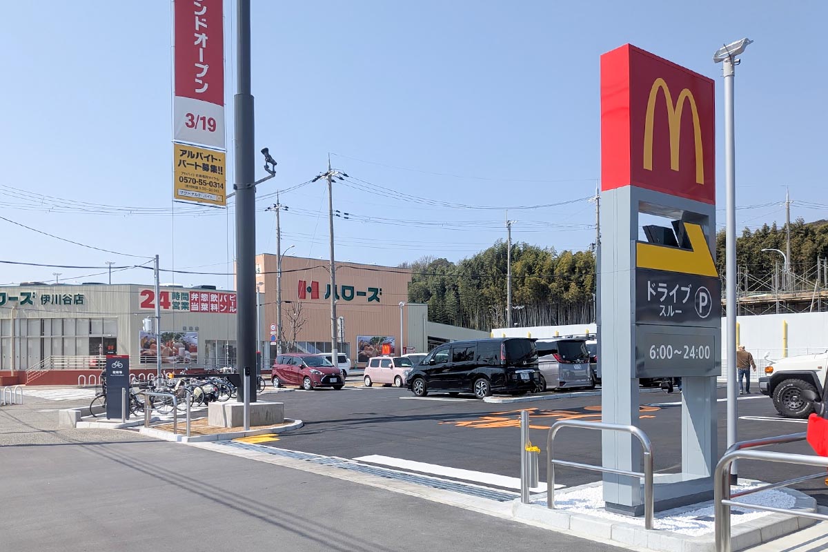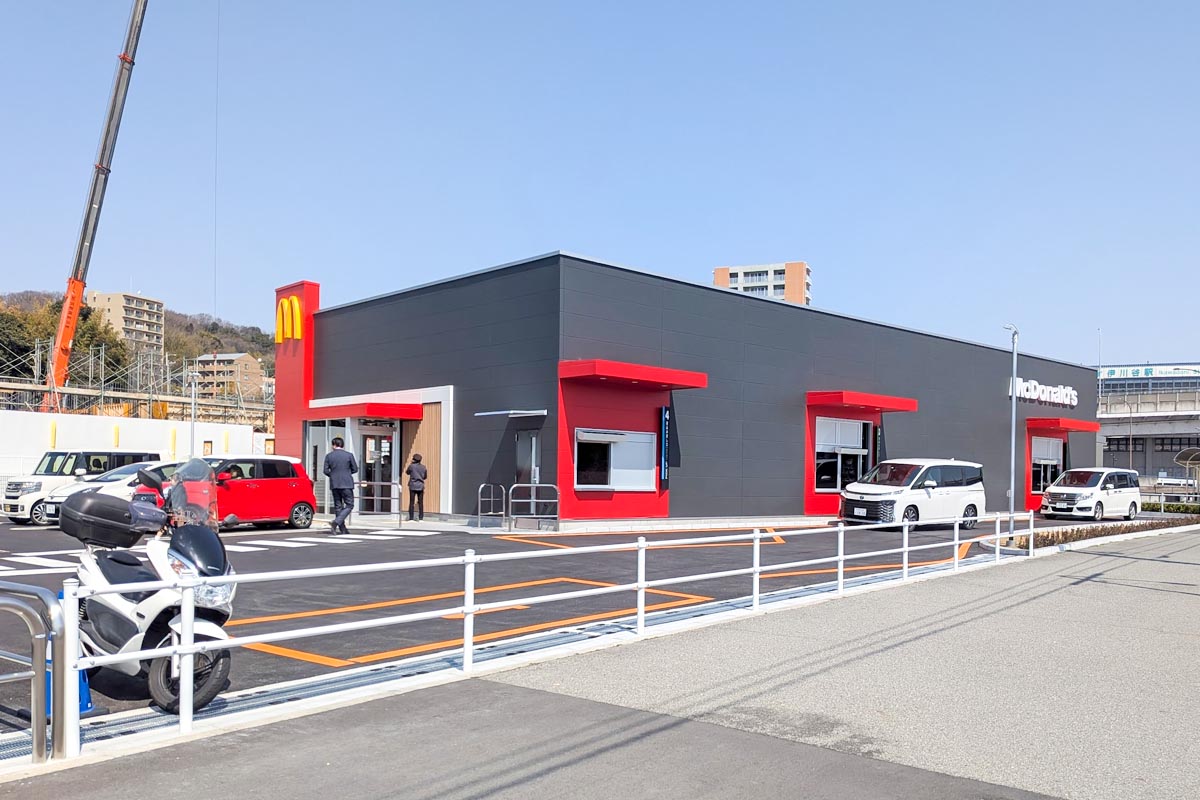神戸市西区前開南町にある神戸市営地下鉄西神・山手線「伊川谷駅」前に、ハンバーガーチェーンの「McDonald(マクドナルド)伊川谷駅前店」がオープンしていました!