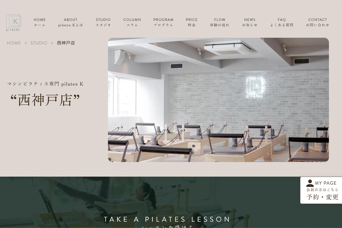 情報を頂いて調べたところ、公式HP内に店舗ページが公開されていました。ピラティスKは全国に100店舗以上あり、兵庫県内では4店舗目となるようです