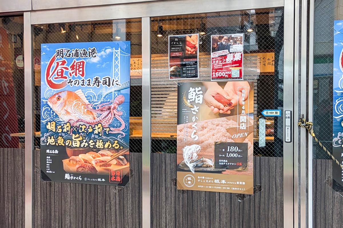 明石駅前の国道2号線沿いに「鮨さかくら」が4月オープン予定!ベビーカステラ屋さんがあったところ